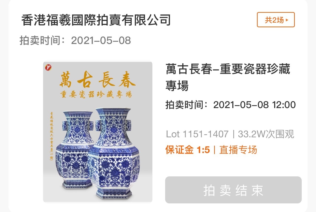 香港福羲國際拍賣行,澳門2021澳門亞洲古董私人收藏拍賣會,於05月08日下午5:點圓滿收官,承蒙各位的鼎力支持,現場、網絡、電話、書面委托出價踴躍,經過的激烈競逐,此次487件拍品,囊括一系列令藏家渴求之珍品,圓滿結拍,在此感謝各大平臺鼎力支持。